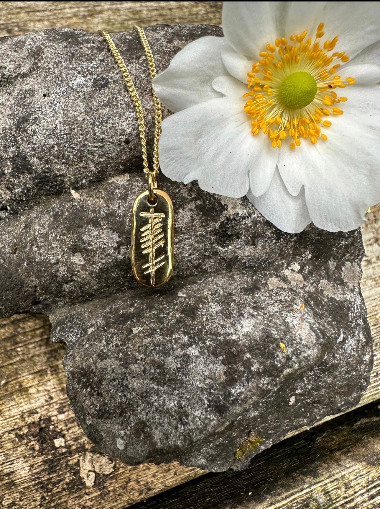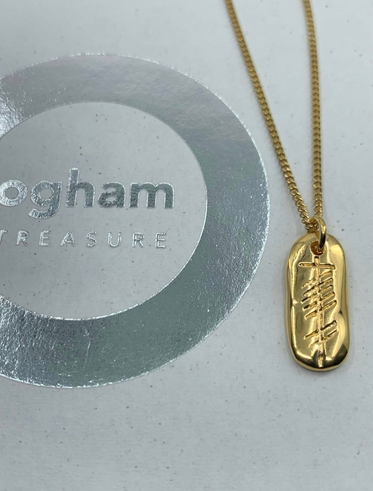 Love/Gra: “Is tú mo ghrá”/”You are my love”.'Grá' is the Gaelic word for 'love' and is carved in this stunning gold vermeil ( sterling silver with a heavy gold plate )in ancient Ogham, the first written gaelic.