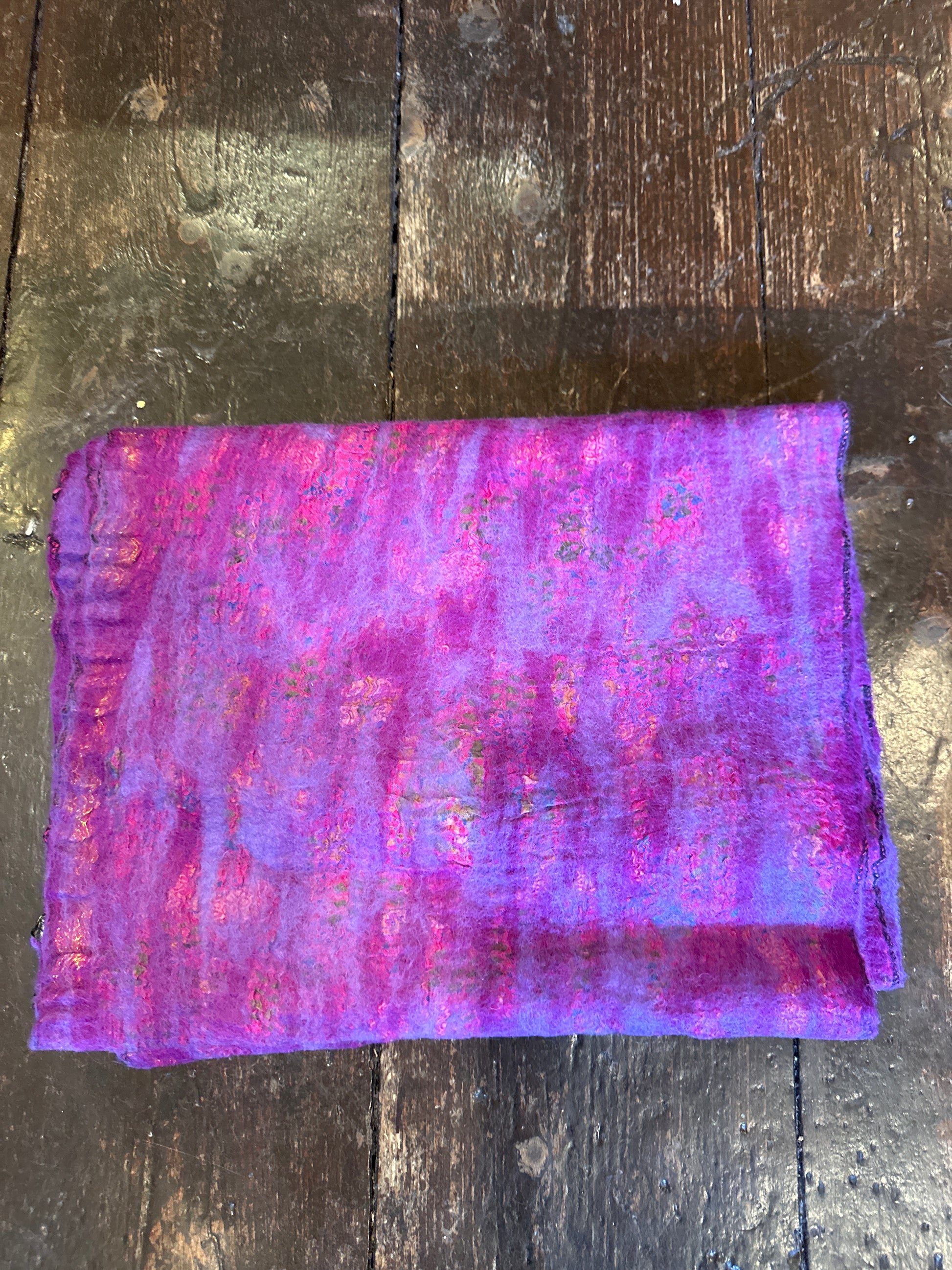 Our new gorgeous felt and silk scarves are handcrafted by our producers in Kathmandu, one of the leading Fair Trade felt companies in Nepal. Recycled silk is overlain with brushstrokes of felt to create rich textures and colours and a luxurious feel. The scarves are both warm, surprisingly lightweight and soft to touch.
