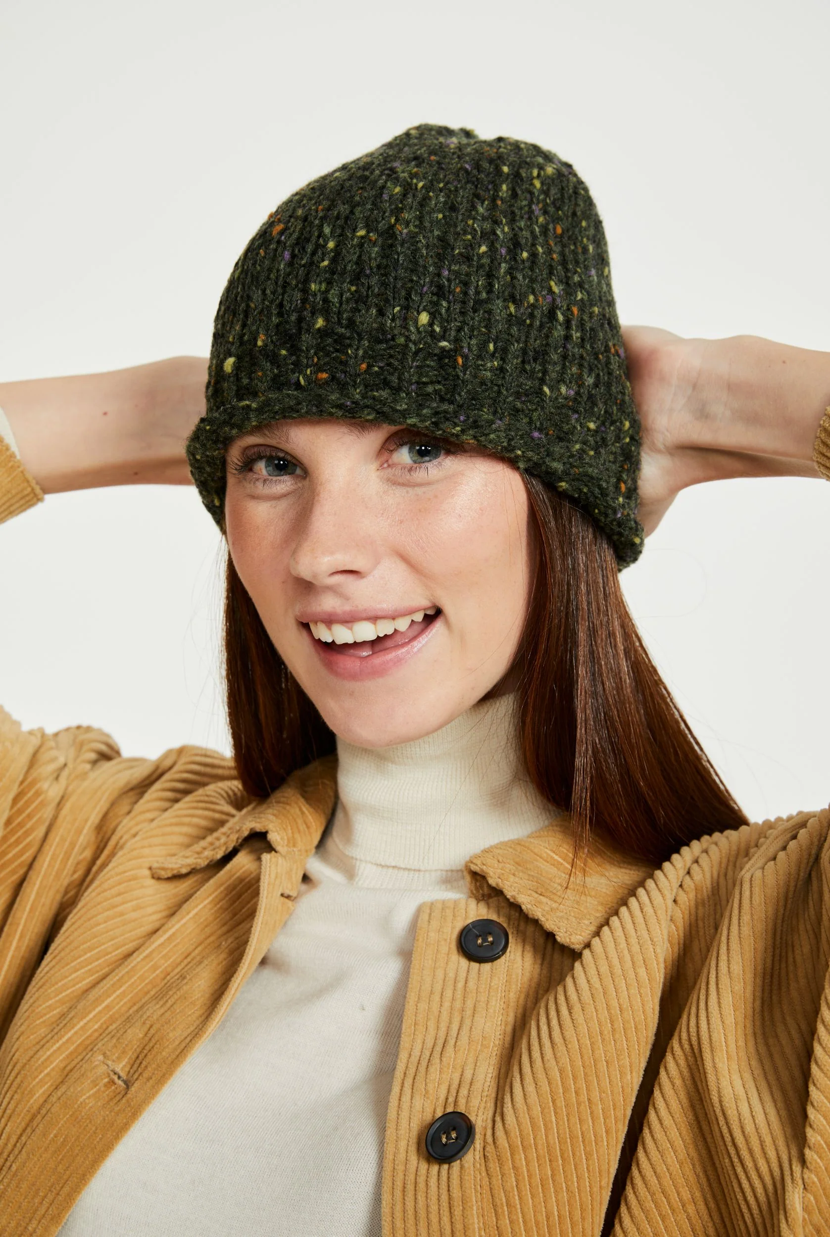 The Hazelwood Roll Hem Beanie is the perfect addition to your capsule wardrobe, if you’re in search of a high quality, cosy hat to keep you warm and stylish all winter. This beanie style hat with a rolled edge is crafted with a plain stitch, highlighting the coloured nepps in the yarn, for an earthy, textured, natural look. In a selection of truly mesmerising colours, you will easily pair this with other pieces from our Aran range.